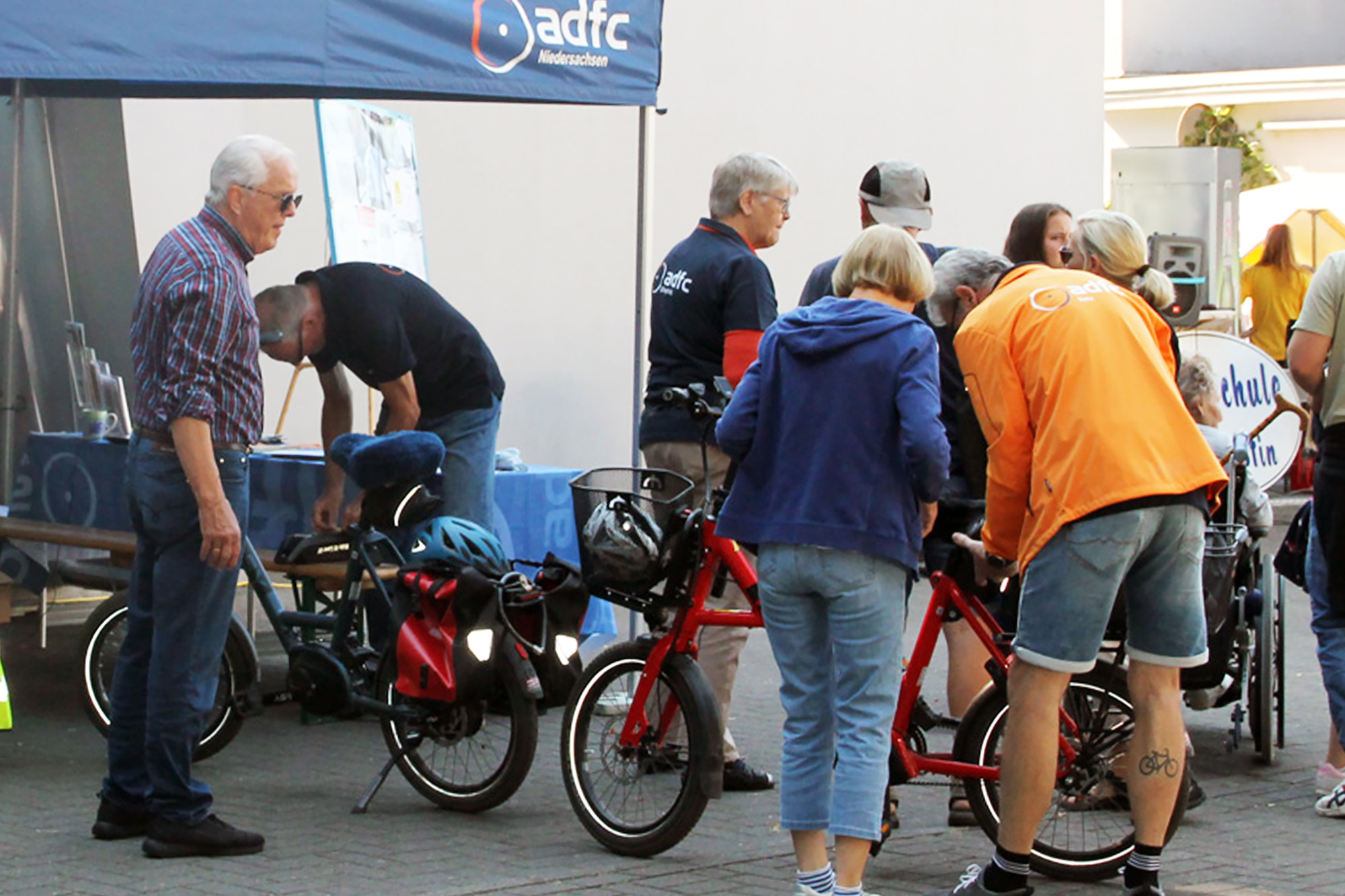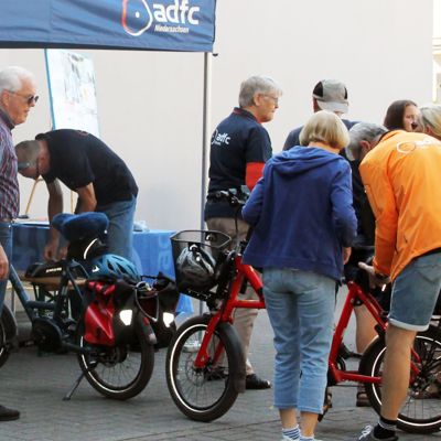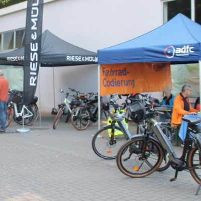 Auch ein Team des ADFC Niedersachsen war dabei und stand Rede und Antwort zur Situation der RadfahrerInnen in der Region, zur Sicherheit auf den Straßen und gab allgemein Auskunft zur Arbeit des Vereins. Außerdem konnten alle BesucherInnen die Gelegenheit nutzen und ihre Fahrräder codieren zu lassen.